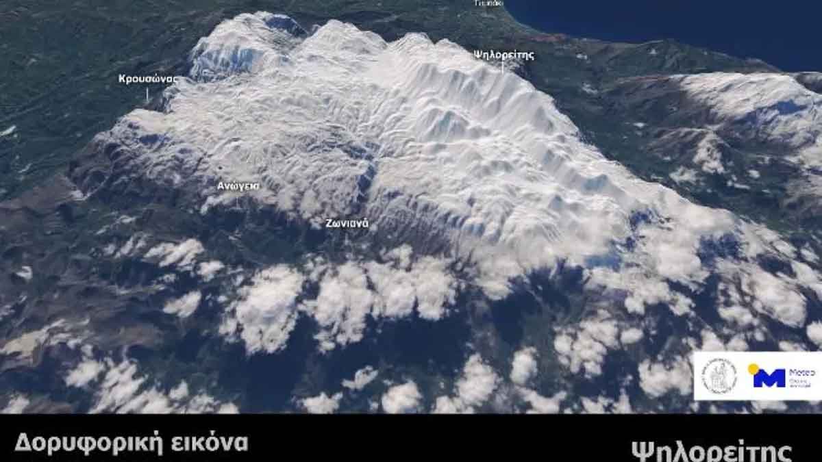 Δορυφορικά δεδομένα πολύ υψηλής ανάλυσης του αμερικανικού δορυφόρου Landsat-8, που πέρασε πάνω από τη χώρα μας το πρωί της 2ας Φεβρουαρίου 2024, τα οποία ανέλυσε και επεξεργάστηκε το meteo.gr σε τρισδιάστατη μορφή παρουσιάζουν την εκτεταμένη χιονοκάλυψη στα βουνά της Κρήτης, στον Ψηλορείτη και στο όρος Δίκτη, όπως αναφέρει ο Διευθυντής Ερευνών του Ινστιτούτου Περιβάλλοντος του Εθνικού Αστεροσκοπείου, μετεωρολόγος, Κώστας Λαγουβάρδος.