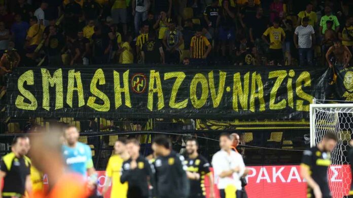 Συγκεκριμένα οι οπαδοί των «κίτρινων» ανήρτησαν πανό στον αγώνα με την Ντιναμό Κιέβου, στο Χαριλάου, στις 10 Αυγούστου και το οποίο έγραφε «Συντρίψτε τους Ναζί του Αζόφ».