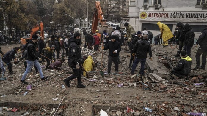 Μάχη με το χρόνο δίνουν τα σωστικά συνεργεία σε Τουρκία και Συρία μετά από τον χθεσινό (Δευτέρα 6/2) σεισμό των 7,8 Ρίχτερ, την ώρα που οι χαμηλές θερμοκρασίες και η κακοκαιρία δυσχεραίνουν ακόμη περισσότερο το έργο αναζήτησης και διάσωσης επιζώντων μέσα στα συντρίμμια.