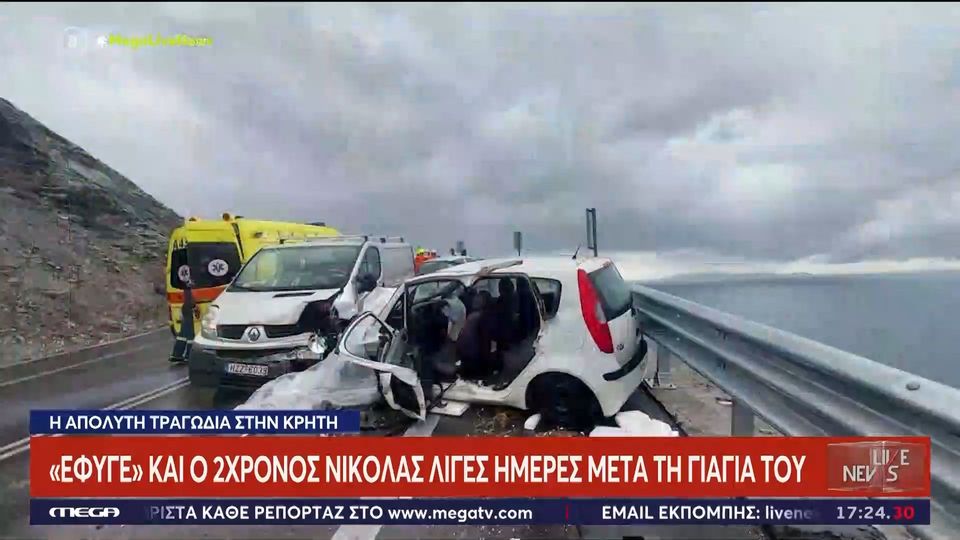 Το τραγικό περιστατικό σημειώθηκε το μεσημέρι της 28ης Ιανουαρίου, στο ύψος της Λυγαριάς Ηρακλείου, επί της εθνικής οδού. Από τη σφοδρότατη σύγκρουση των δύο αυτοκινήτων, τραυματίστηκαν βαρύτατα η 59χρονη και το εγγονάκι της, ενώ η 31χρονη μητέρα του παιδιού τραυματίστηκε ελαφρύτερα. Η γιαγιά του παιδιού εισήχθη εσπευσμένα στη ΜΕΘ, όπου μερικές ώρες αργότερα ξεψύχησε. Δυστυχώς, εξέπνευσε και ο μικρός Νικόλας, με το μέγεθος της απώλειας που καλείται να διαχειριστεί η οικογένειά του να είναι δυσθεώρητο.